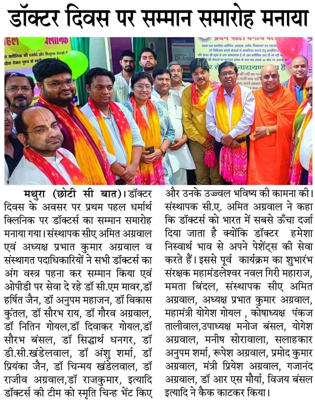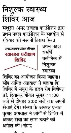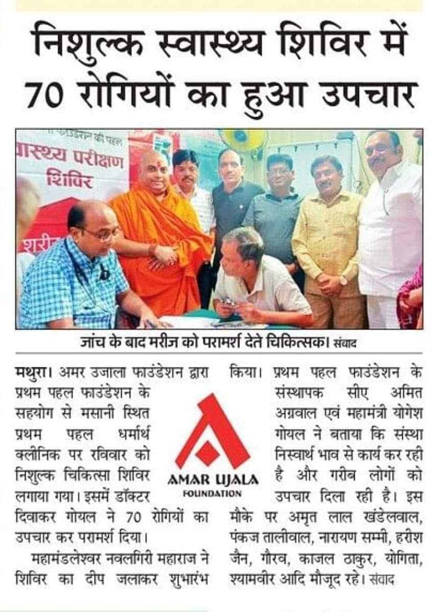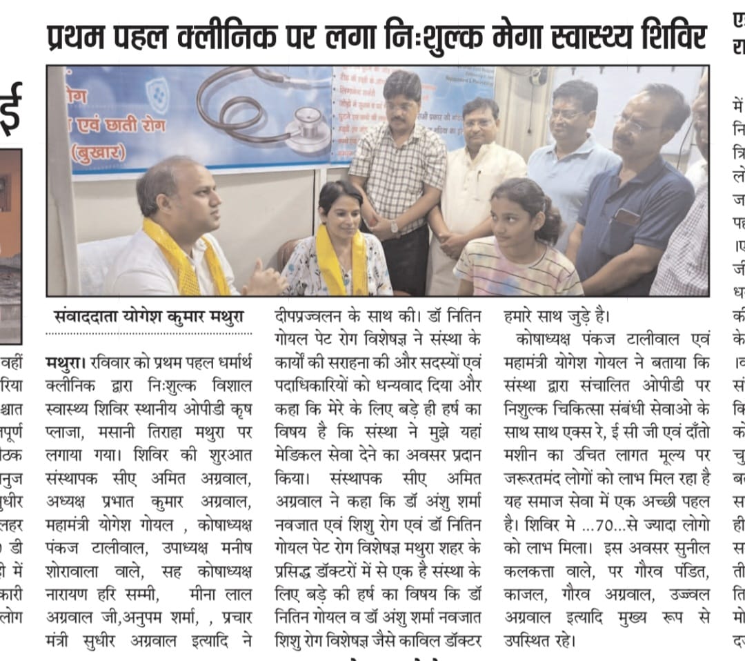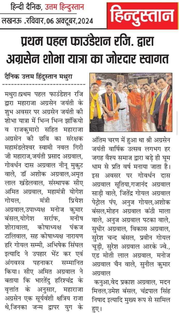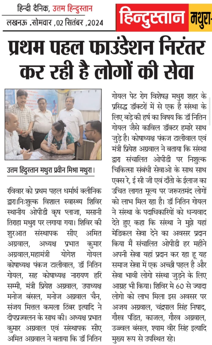 दिनांक 14 मई को प्रथम पहल फाउंडेशन रजि मथुरा द्वारा 2023-2024 की प्रथम कार्यकारिणी बैठक का गठन स्थानीय अग्रवाल होटल मिर्ची nh2 मथुरा पर आयोजन किया गया मीटिंग का शुभारंभ संस्थापक अध्यक्ष सीए अमित अग्रवाल, संरक्षक महामंडलेश्वर योगी श्रीनवलगिरी जी महाराज, महामंत्री अनुपम शर्मा, कोषाध्यक्ष प्रमोद अग्रवाल टाल वाले, पंकज पालीवाल, दुर्गेश बिंदल प्रेस वाले, सुनील अग्रवाल कनुआ, योगेश सराफ मंगलसूत्र, विजय बंसल, अनुज अग्रवाल, मनोज कुमार बंसल, यू.के. बंसल, मदन मोहन अग्रवाल, राजीव गुप्ता, सुधीर अग्रवाल, राधाकृष्ण सूतिया मंत्री इत्यादि ने दीपप्रज्ज्वन के साथ किया गया।