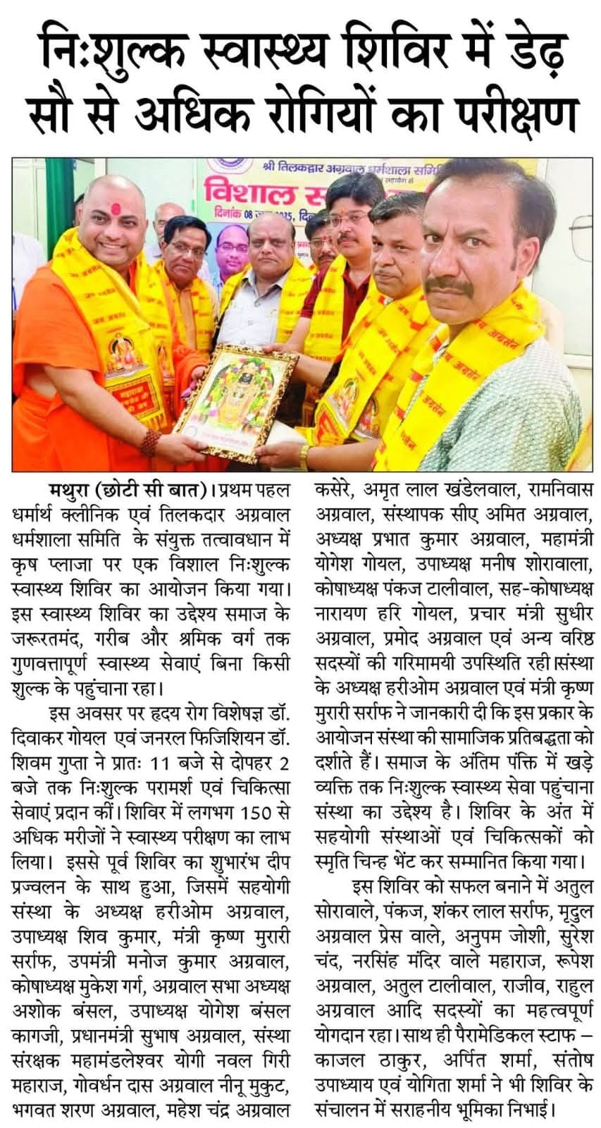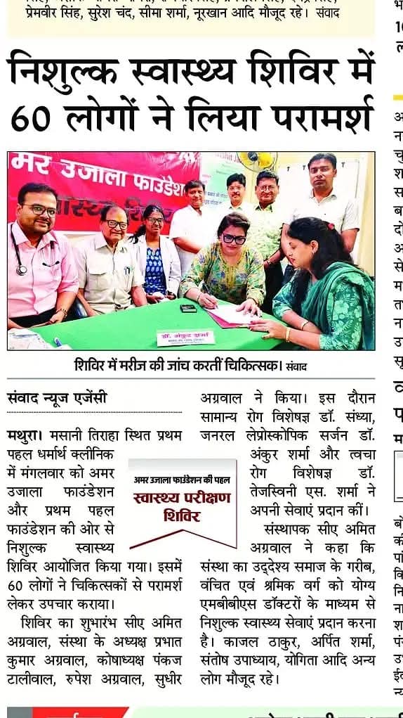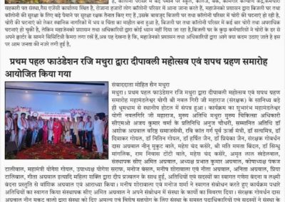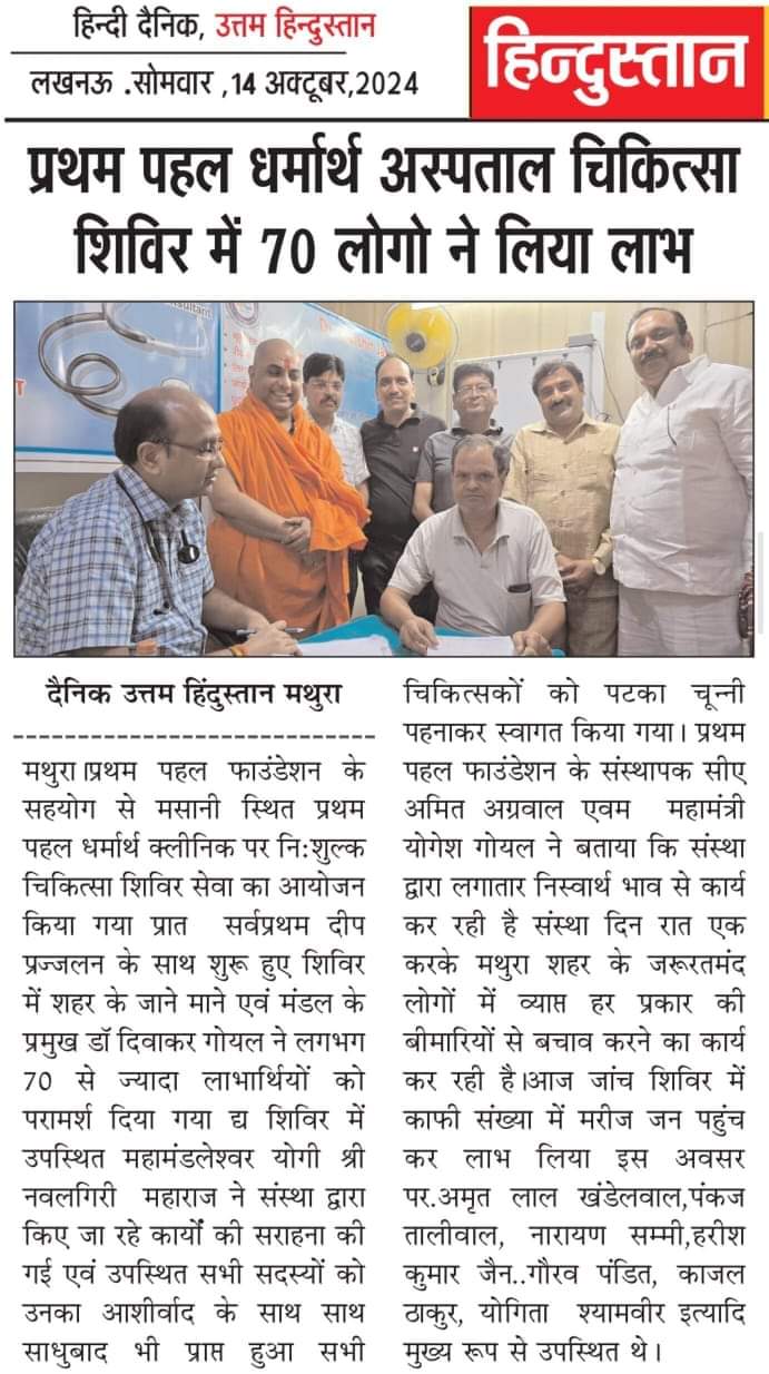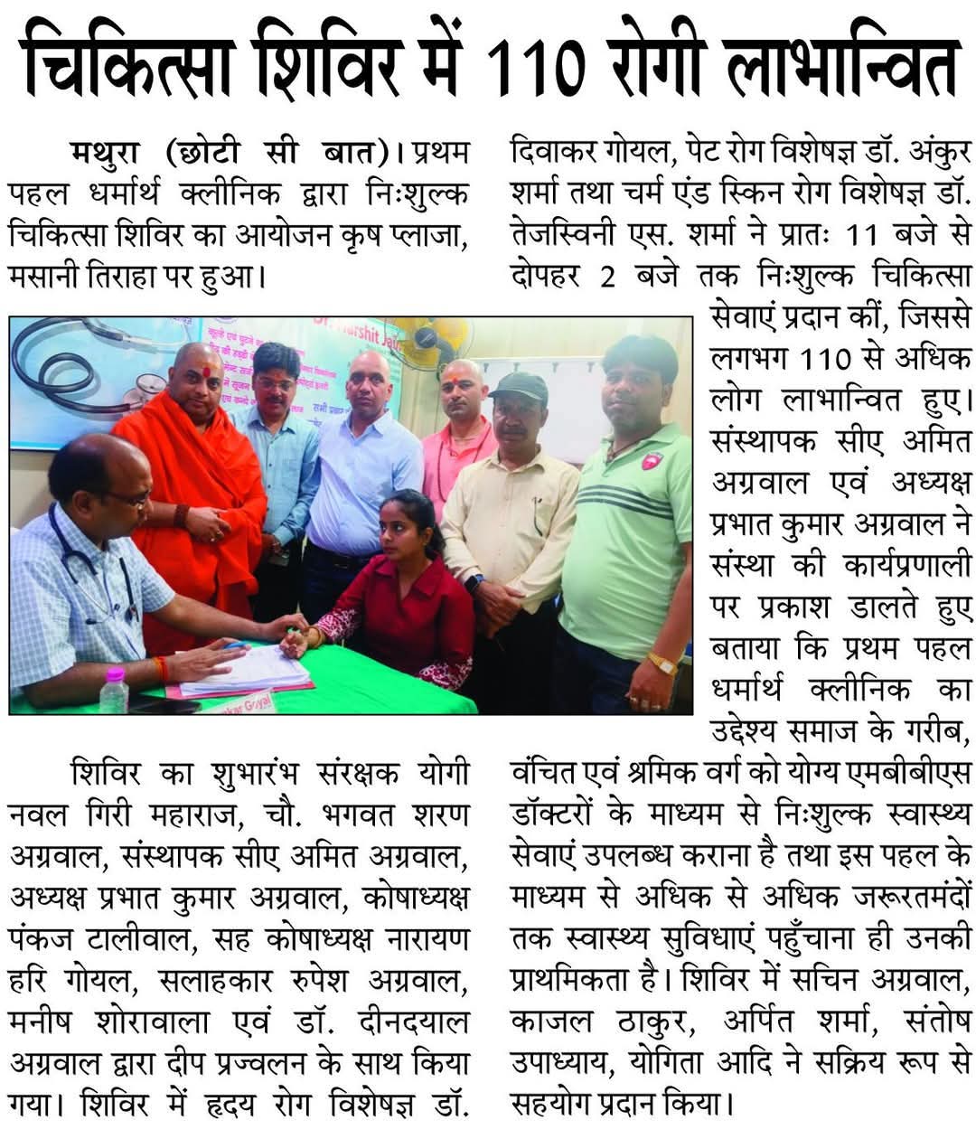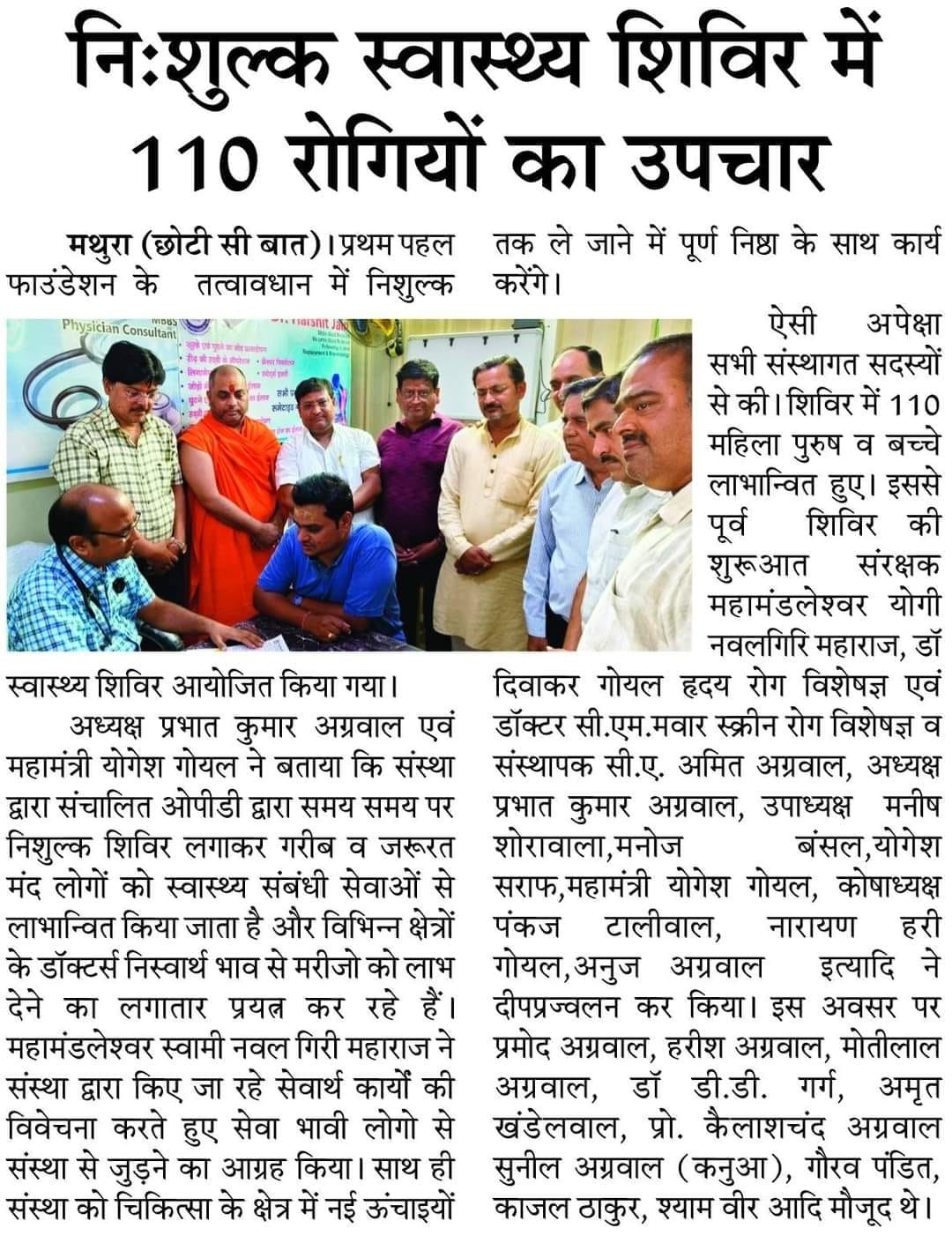 दिनांक 14 मई को प्रथम पहल फाउंडेशन रजि मथुरा द्वारा 2023-2024 की प्रथम कार्यकारिणी बैठक का गठन स्थानीय अग्रवाल होटल मिर्ची nh2 मथुरा पर आयोजन किया गया मीटिंग का शुभारंभ संस्थापक अध्यक्ष सीए अमित अग्रवाल, संरक्षक महामंडलेश्वर योगी श्रीनवलगिरी जी महाराज, महामंत्री अनुपम शर्मा, कोषाध्यक्ष प्रमोद अग्रवाल टाल वाले, पंकज पालीवाल, दुर्गेश बिंदल प्रेस वाले, सुनील अग्रवाल कनुआ, योगेश सराफ मंगलसूत्र, विजय बंसल, अनुज अग्रवाल, मनोज कुमार बंसल, यू.के. बंसल, मदन मोहन अग्रवाल, राजीव गुप्ता, सुधीर अग्रवाल, राधाकृष्ण सूतिया मंत्री इत्यादि ने दीपप्रज्ज्वन के साथ किया गया।