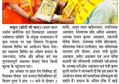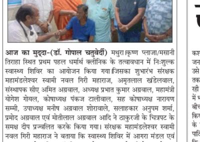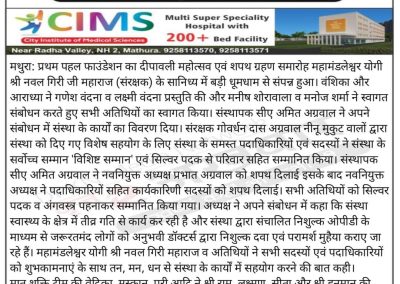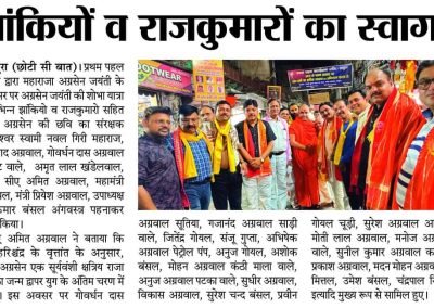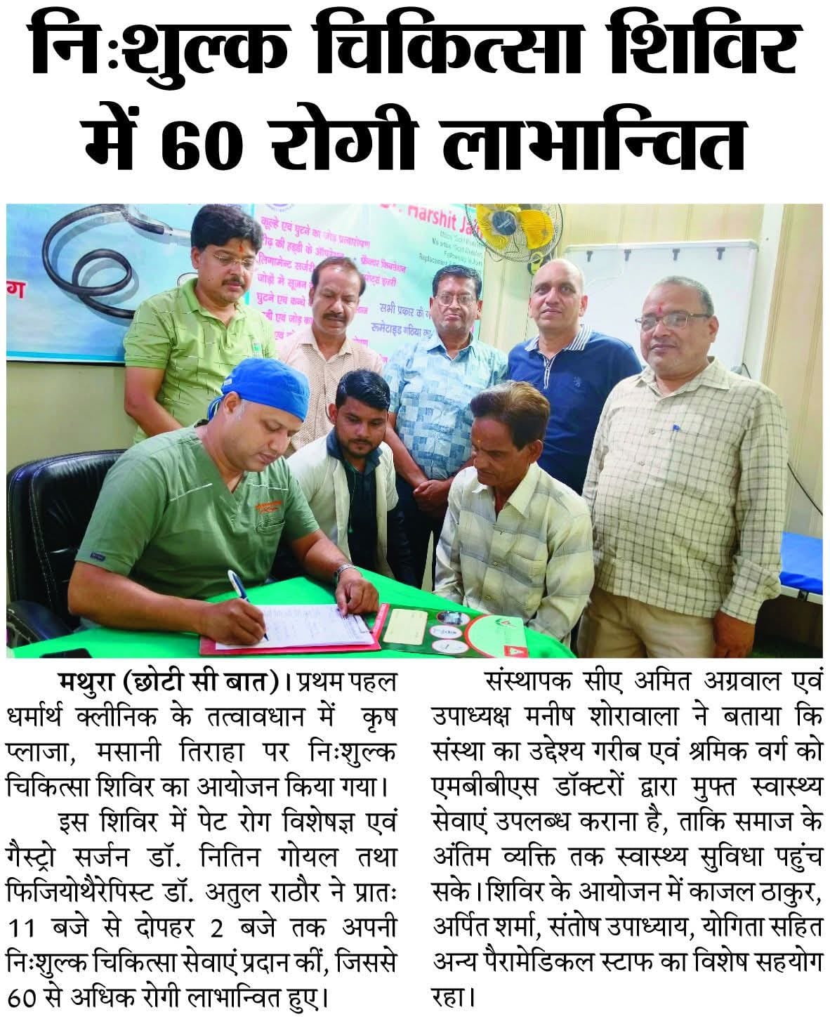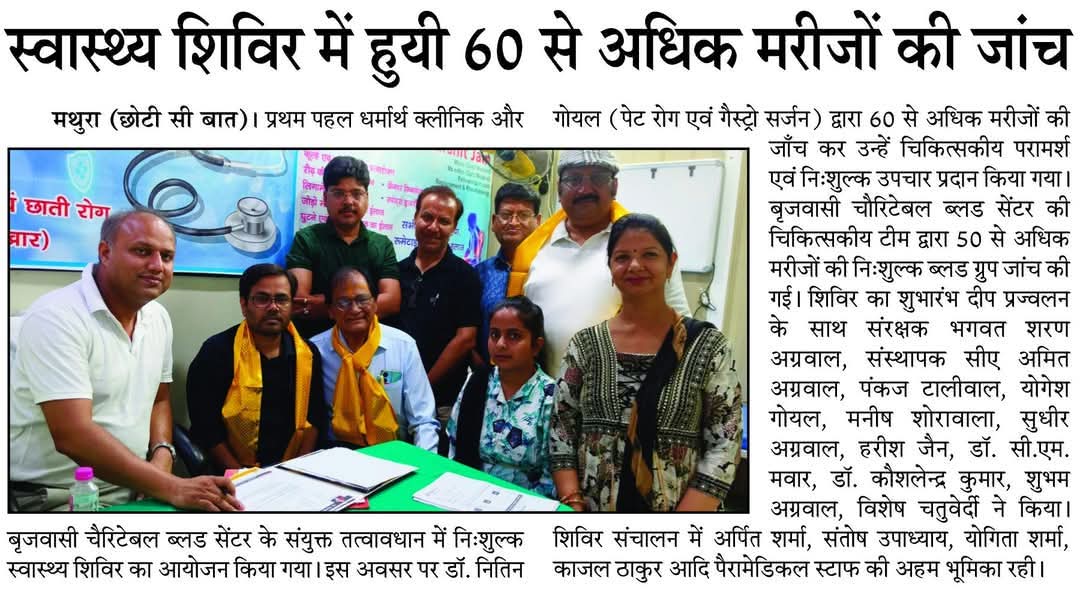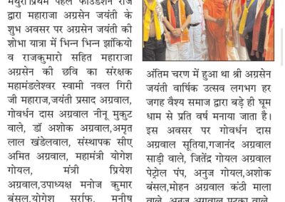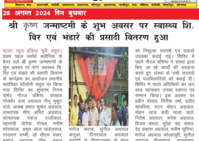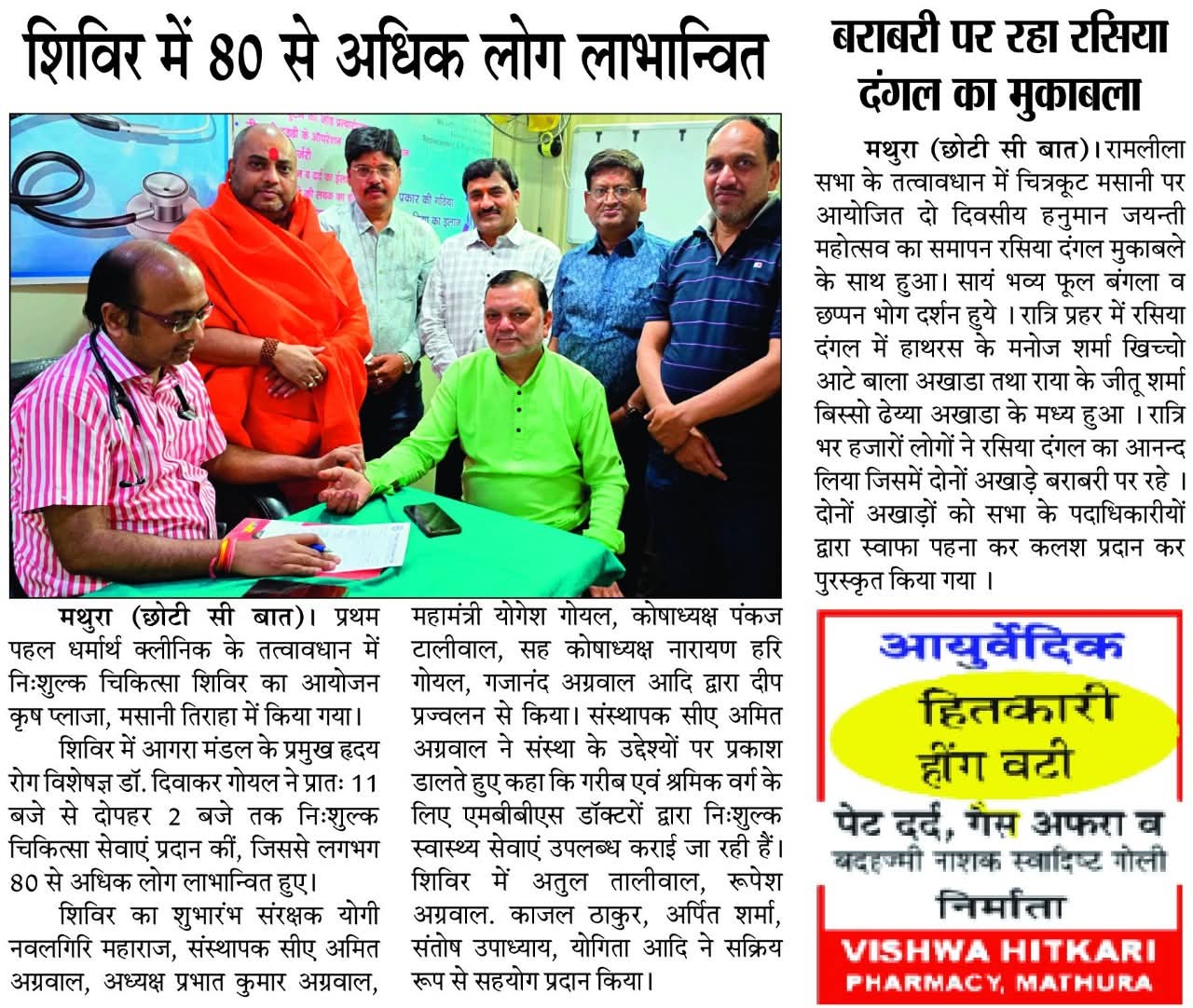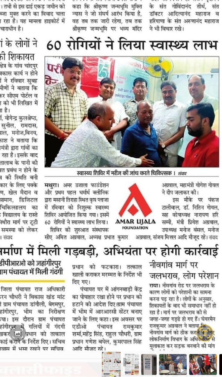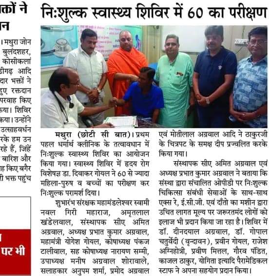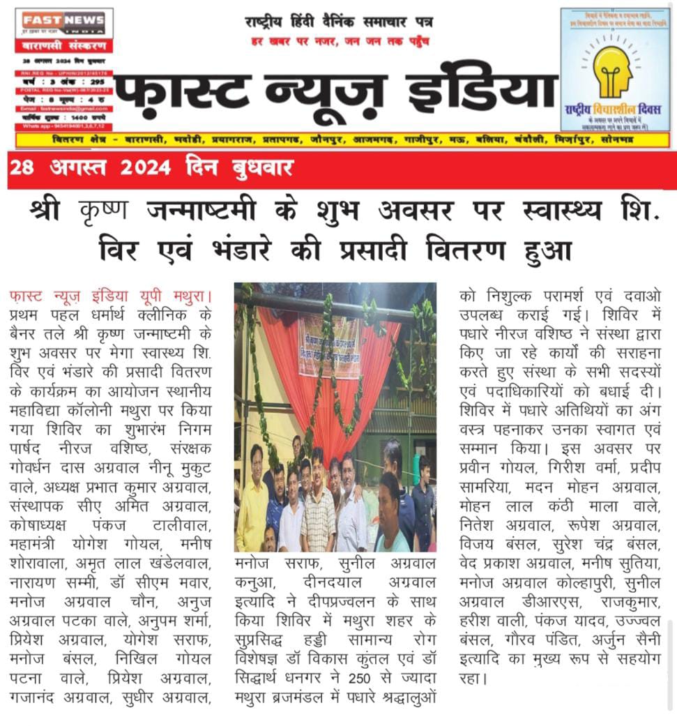 दिनांक 14 मई को प्रथम पहल फाउंडेशन रजि मथुरा द्वारा 2023-2024 की प्रथम कार्यकारिणी बैठक का गठन स्थानीय अग्रवाल होटल मिर्ची nh2 मथुरा पर आयोजन किया गया मीटिंग का शुभारंभ संस्थापक अध्यक्ष सीए अमित अग्रवाल, संरक्षक महामंडलेश्वर योगी श्रीनवलगिरी जी महाराज, महामंत्री अनुपम शर्मा, कोषाध्यक्ष प्रमोद अग्रवाल टाल वाले, पंकज पालीवाल, दुर्गेश बिंदल प्रेस वाले, सुनील अग्रवाल कनुआ, योगेश सराफ मंगलसूत्र, विजय बंसल, अनुज अग्रवाल, मनोज कुमार बंसल, यू.के. बंसल, मदन मोहन अग्रवाल, राजीव गुप्ता, सुधीर अग्रवाल, राधाकृष्ण सूतिया मंत्री इत्यादि ने दीपप्रज्ज्वन के साथ किया गया।